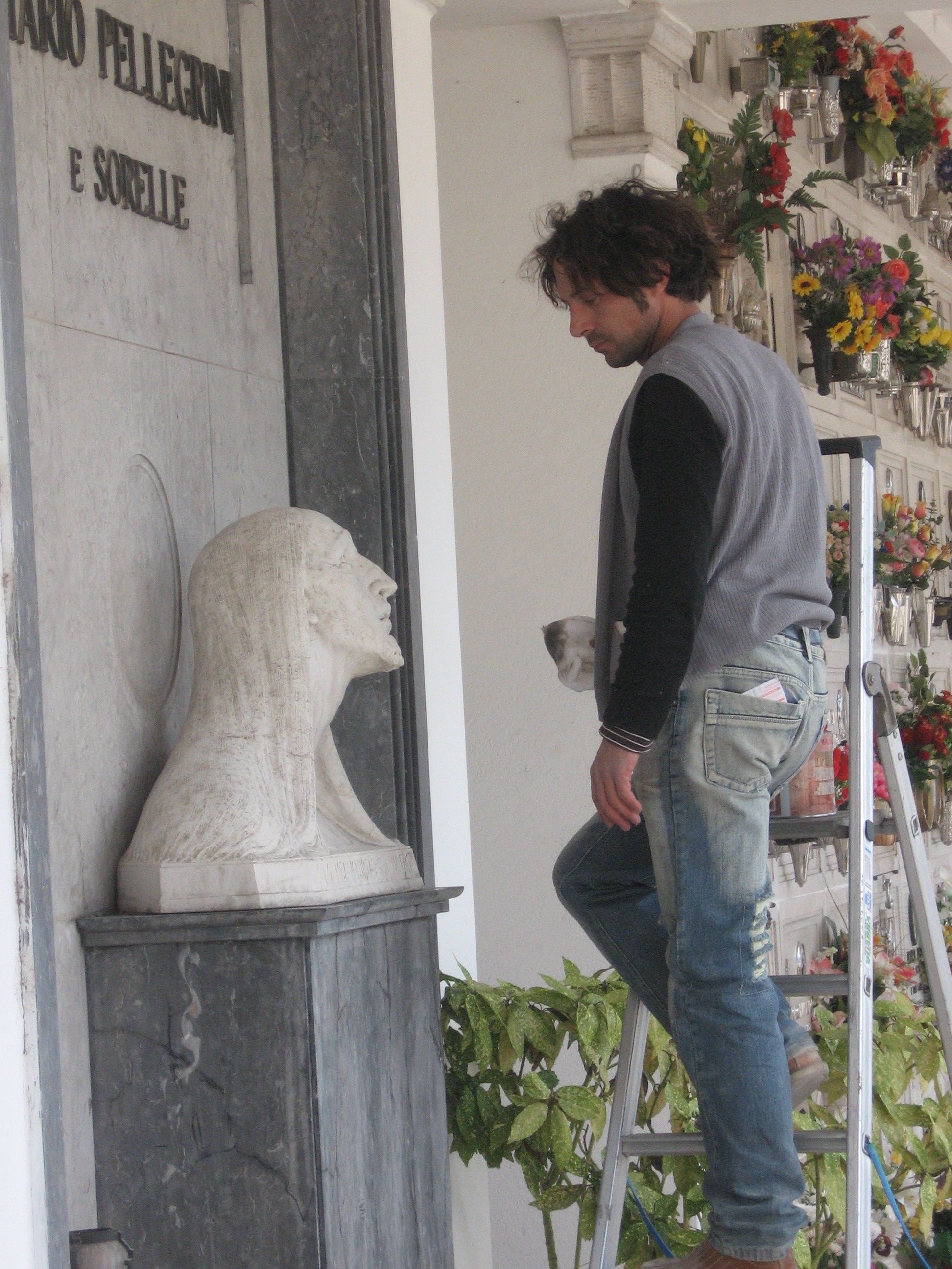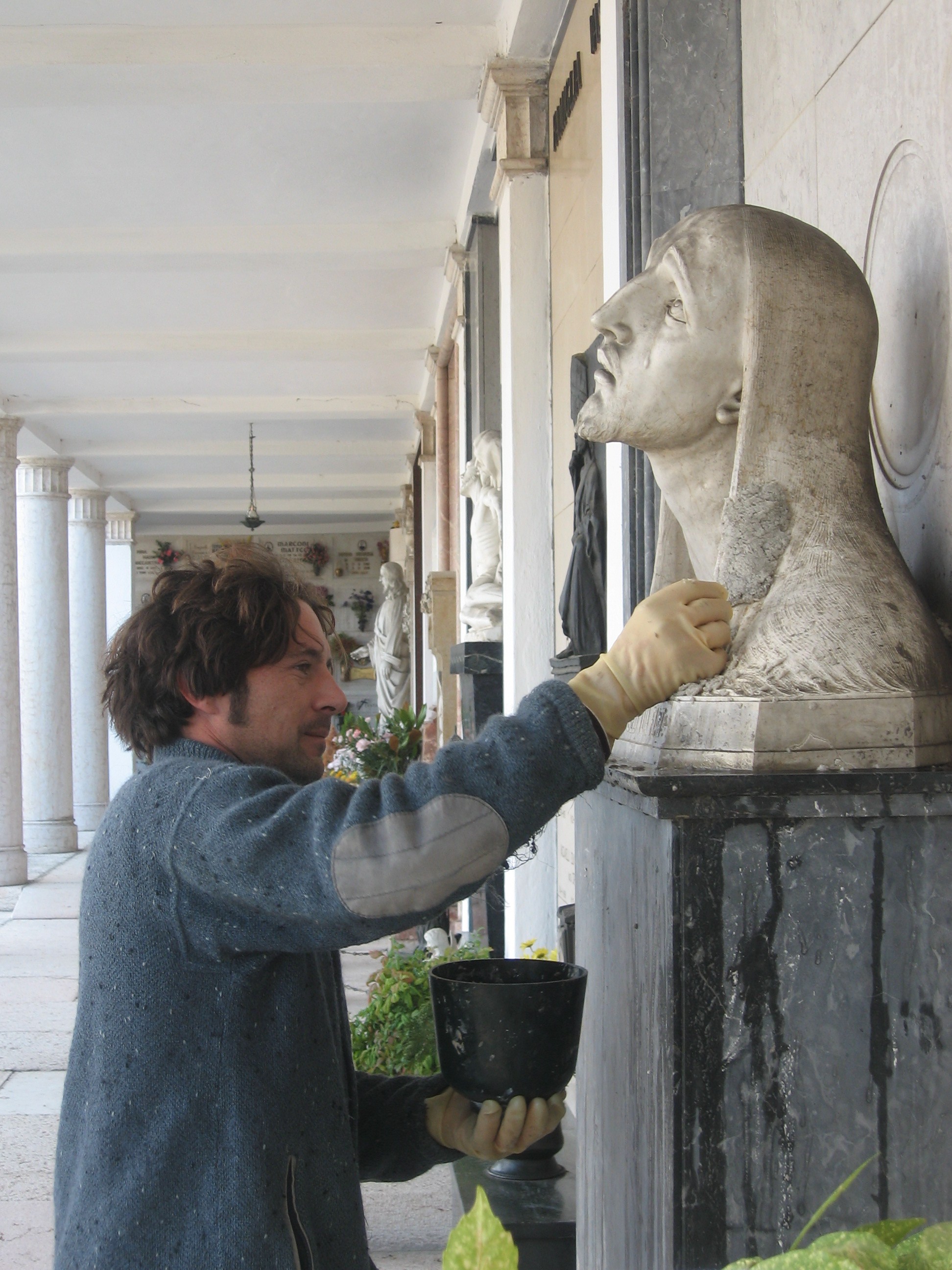 Ripulitura e restauro dell’opera “Cristo piangente” presso il Cimitero di Sant’Ambrogio, opera scolpita da Ernesto Pellegrini, uno degli artisti/scalpellini di Sant’Ambrogio, nato nel 1889.